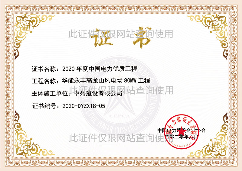 2020年度中國電力優(yōu)質工程