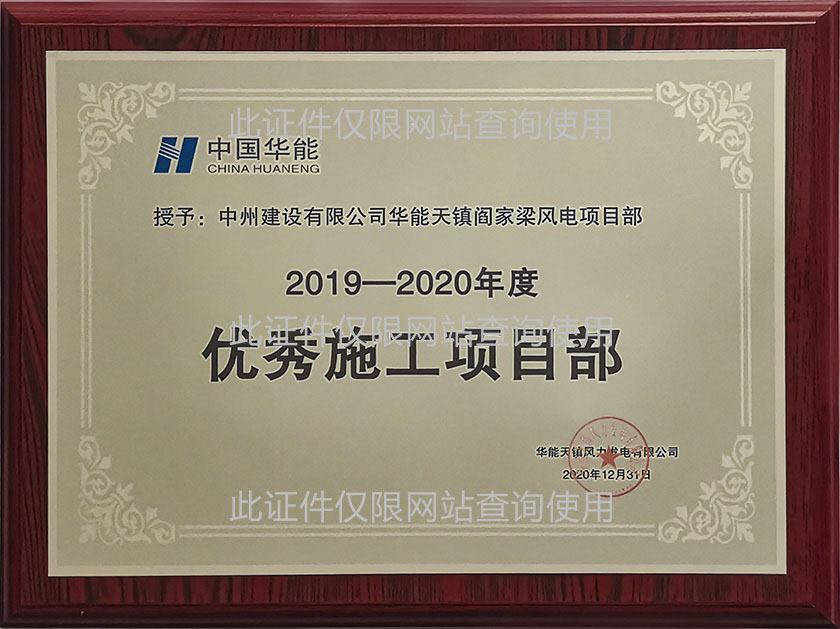2019-2020年度優(yōu)秀施工項目